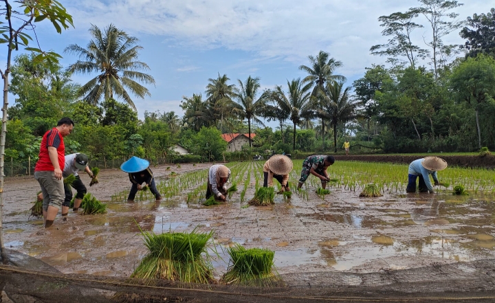 Dalam kegiatan tersebut, Babinsa ikut serta membantu petani dalam proses penanaman padi. Kehadiran aparat TNI di lapangan diharapkan mampu menambah semangat para petani, sekaligus mempererat kebersamaan antara TNI dan masyarakat.