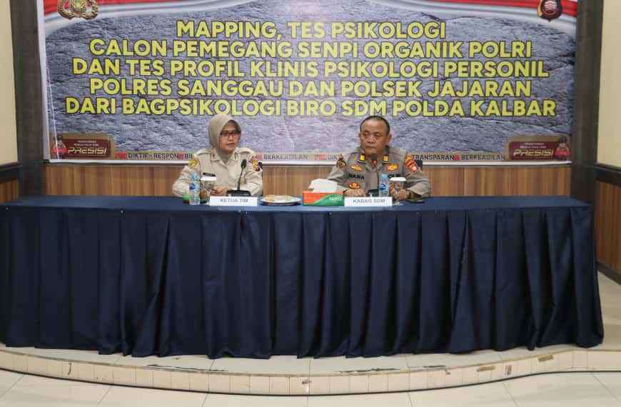 Kalbarpost.co.id.- Sanggau, Polda Kalbar – Pemeriksaan psikologi bagi personel Polres Sanggau dilaksanakan pada Rabu, 19 November 2025 sekitar pukul 08.30 WIB bertempat di Aula Graha Wira Pratama. Kegiatan ini dipimpin langsung Tim Bagpsikologi Ro SDM Polda Kalbar sebagai upaya memperkuat pembinaan mental, deteksi dini, serta memastikan kesiapan anggota dalam menghadapi tuntutan tugas kepolisian.