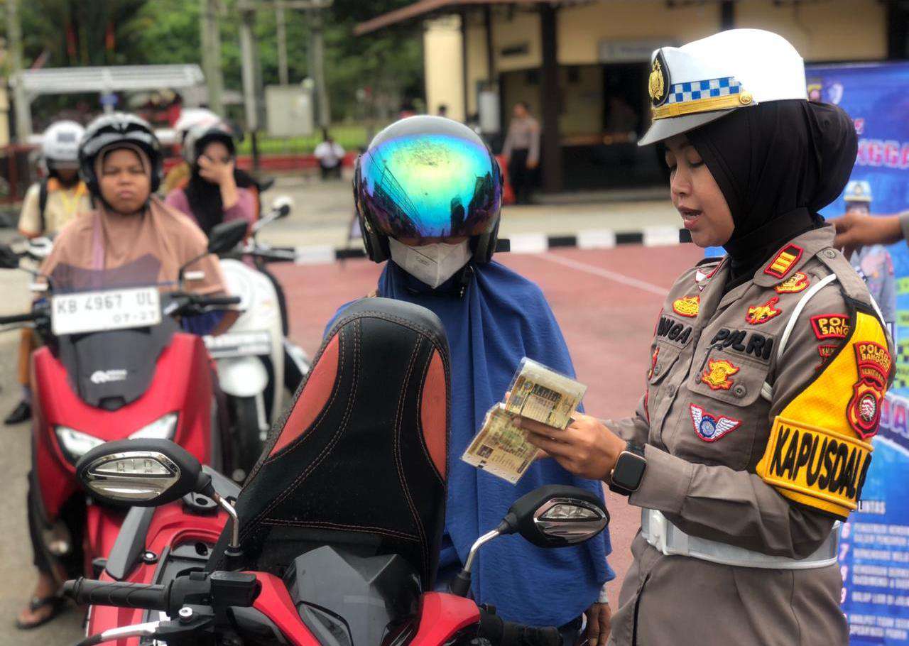 Tak hanya itu, pengendara yang terbukti lengkap administrasi dan tertib berlalu lintas diberikan apresiasi berupa stiker “Saya Tertib Berlalulintas”. Stiker tersebut ditempelkan langsung pada kendaraan sebagai bentuk dukungan terhadap budaya tertib lalu lintas. Langkah ini menjadi motivasi bagi masyarakat untuk terus menjaga disiplin di jalan.
