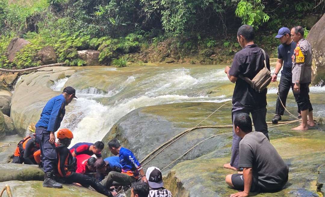 Namun, situasi berubah menjadi petaka saat sekitar pukul 17.19 WIB, korban duduk di area bebatuan dengan arus air yang cukup deras. Tanpa diduga, korban terpeleset dan terseret arus hingga masuk ke dalam rongga di antara bebatuan.