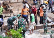 TMMD Ke 127 Kodim 0808/Blitar Dan Warga Gotong Royong Cor Pondasi Rumah Mbah Mujinah